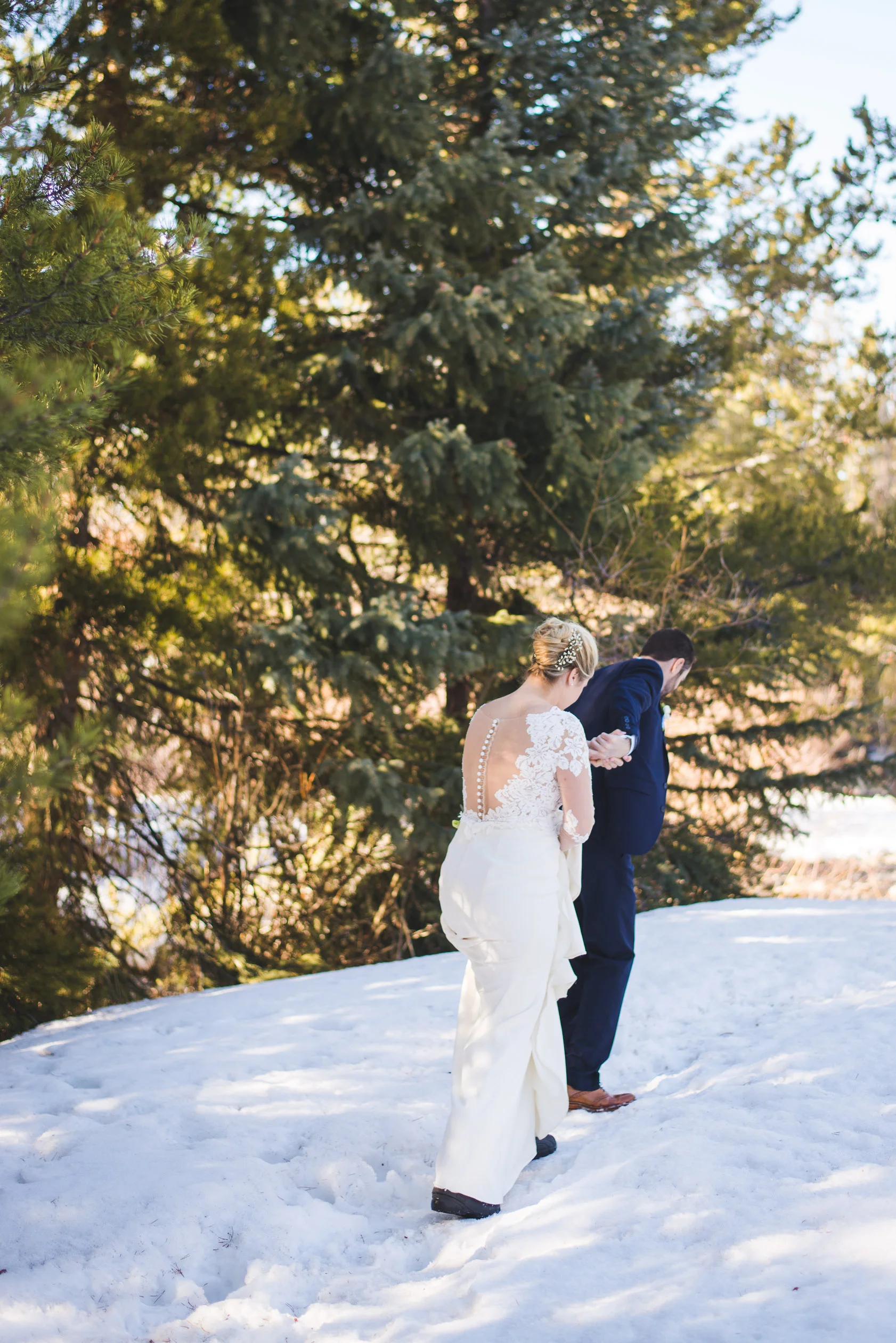 This beautiful duo said, "I do" in front of a handful of close friends at the always-stunning Sapphire Point. Snowy peaks stood in the background as some of the spring snow still melted on the ground. A few happy tears, a sweet kiss and one champagne toast later, and these two could finally say they did it! A million congratulations to the newlyweds.